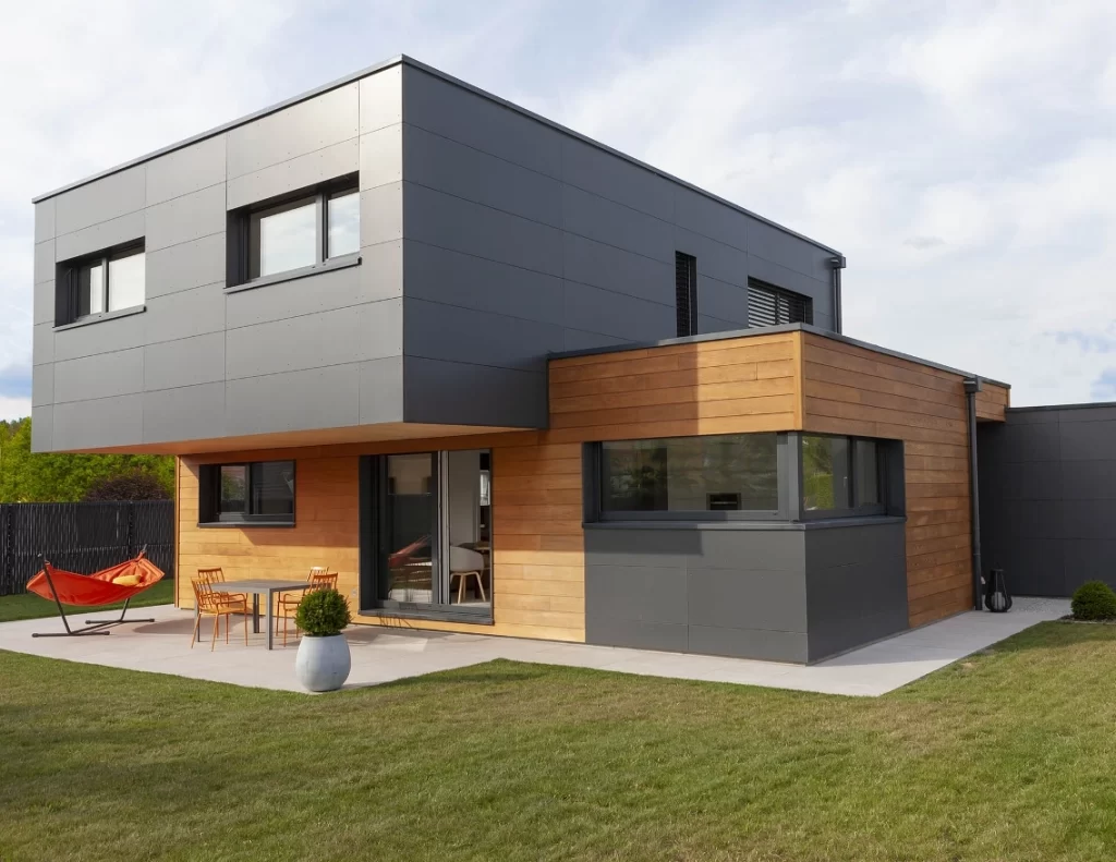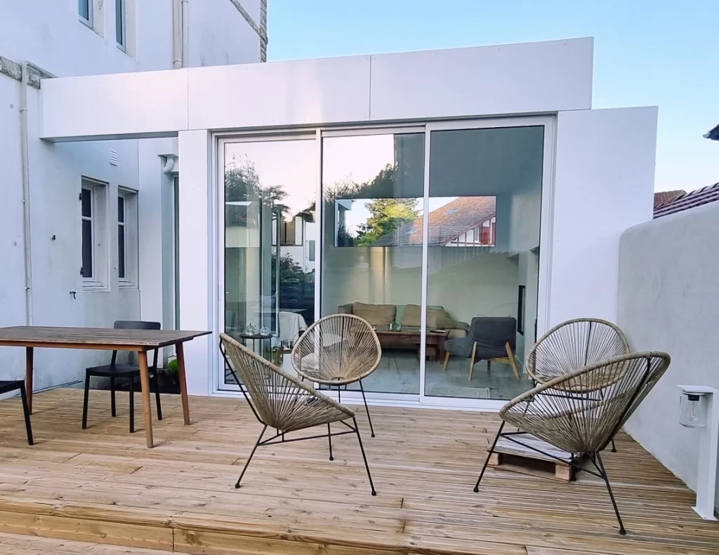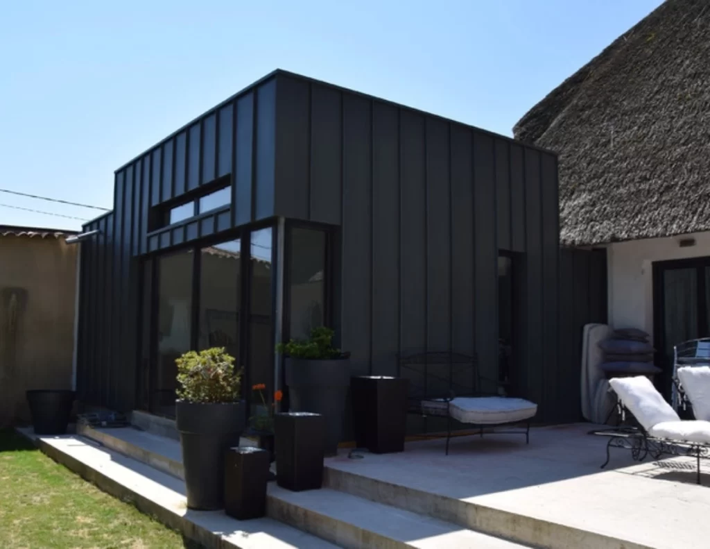L'ossature métallique légère permet une multitude de finitions et de bardages pour l'habillage extérieur (bardage bois, aluminium, enduit...). Tout est modulable et ajustable à vos goûts !